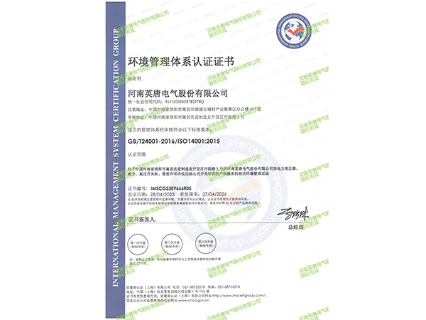 环境管理体系认证证书